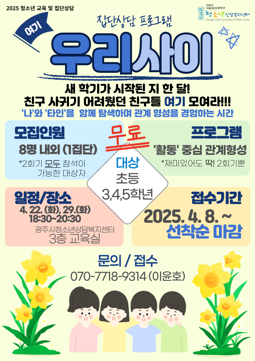 * 장소: 광주시청소년상담복지센터 내 교육실(광주시 청소년수련관 3층)